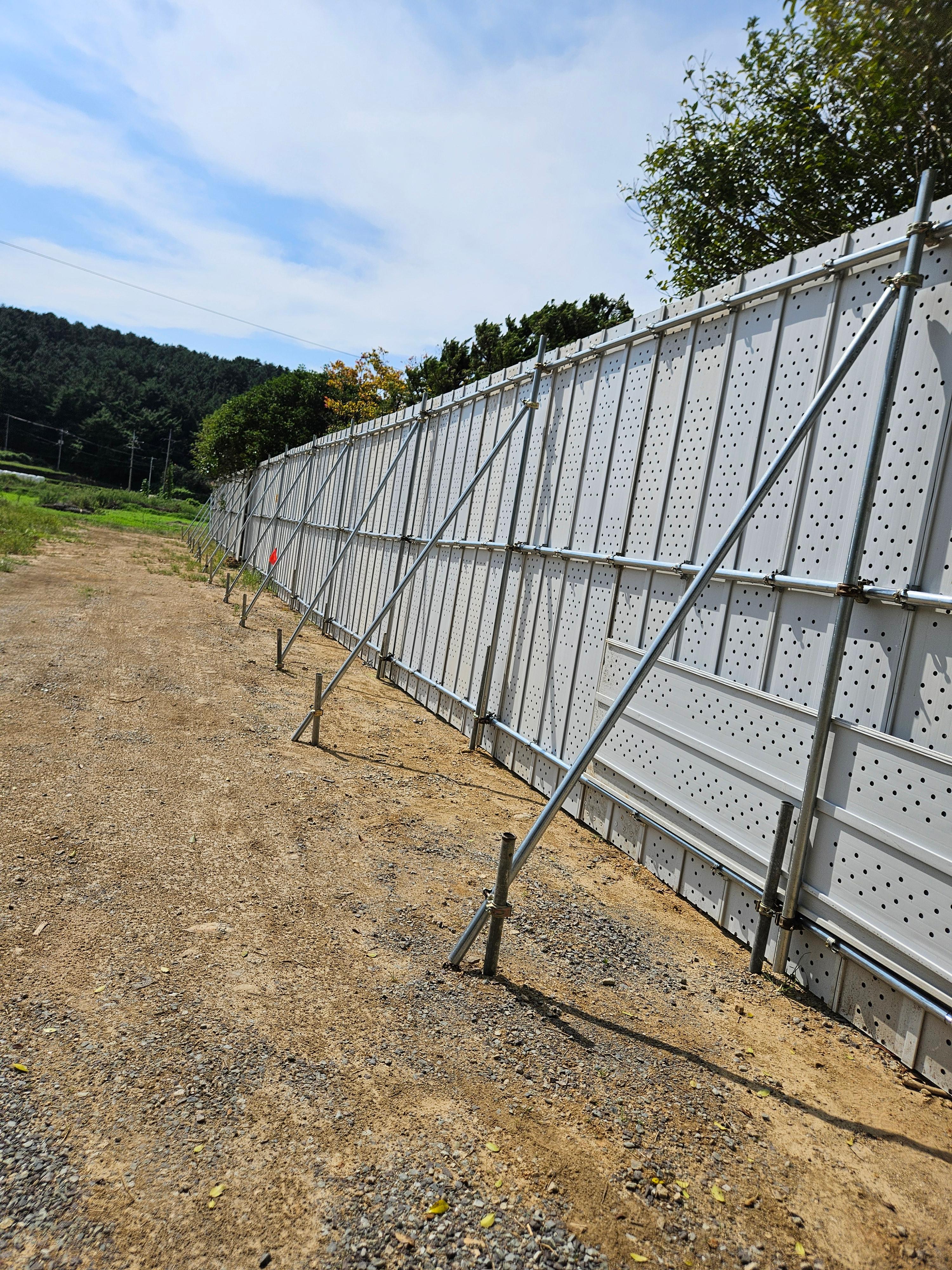 방음판은 저희 공장에 보유하고 있는 중고자재를 사용하여 저렴한 금액으로 설치를 도와드렸으며 주주경간은 3.0M, 지주간격은 1:1로 설계하여 설치하였습니다.